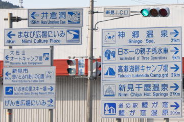 中国道新見ICを下りて国道180号線を北上する。 新見IC出口正面の標識には千屋温泉まで27kmとある。 |