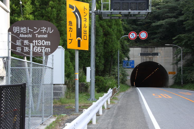 今回の二つの山の登山口となる明地トンネルは 千屋温泉から約1kmの地点だ。 |