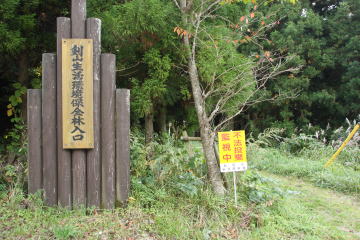 左手に立っている剣山を案内する標識に導かれ左折する。 ここからやっと登山道らしくなった。