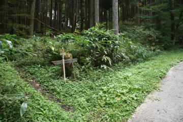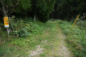 明地トンネルの手前右側に駐車スペースがあるのでここに車を駐車する。 登山道への取り付きはこの駐車スーペースの脇の林道から始まる。