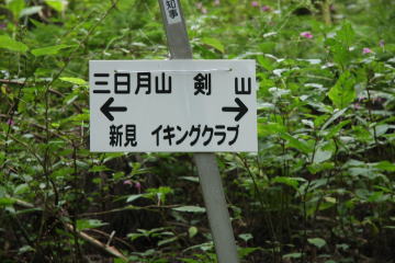 わずかに進むと三日月山と剣山の分岐に至る。 まずは三日月山の山頂を目指そうと分岐を左折する。 |