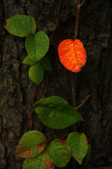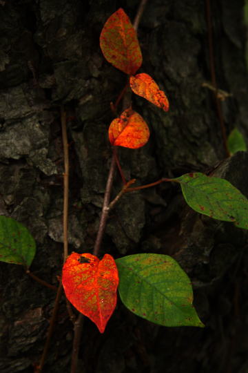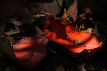 真っ赤な落ち葉に秋を感じて立ち止まり パチリ。 |