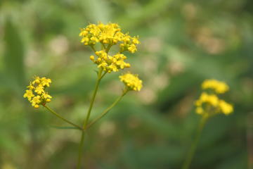 小休止のあと剣山に向かう。 来た道を分岐まで引き返し、これまでとは違い良く整備された剣山頂上に続く登山道を進む。 緩やかな道が続き、足元にはツリガネニンジンやアキノキリンソウなどが出迎えてくれた。 |