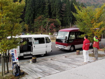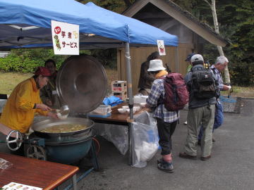 | 下山後に新庄村の職員の方に参加人数を尋ねたところ 昨年の159名を大幅に上回り、250名の参加があったということだった。 お天気にも恵まれて参加された方は紅葉の登山道にさぞかし満足されたことだろう。(PM12:43) |