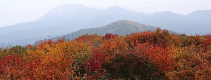 金ヶ谷山の分岐付近からの紅葉の風景 |