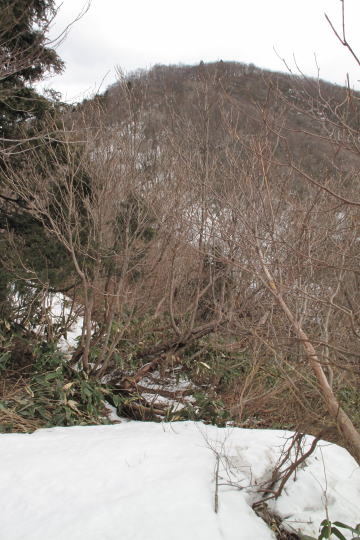 | 尾根を忠実に辿るとやがて小ピークに辿り着いた。 | |||