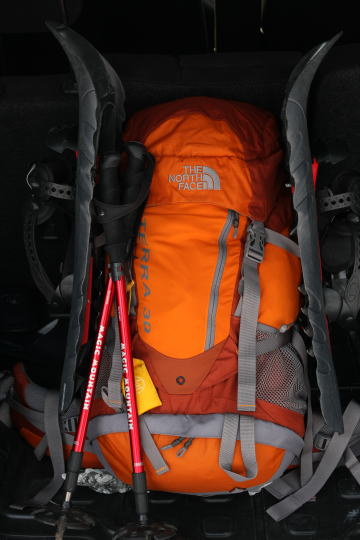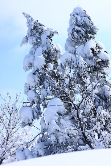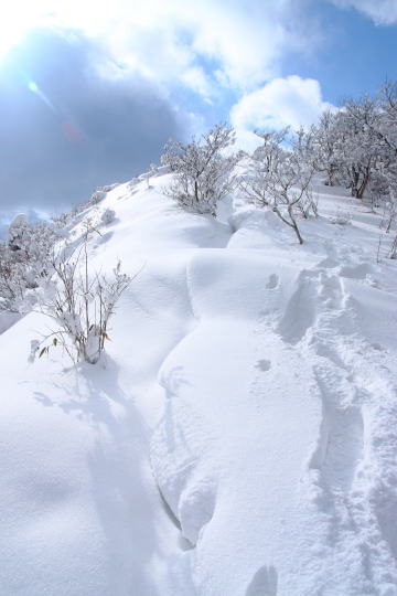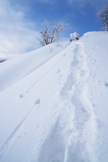 予想通りの積雪だった。 スノーシューを途中まで担いできた甲斐があった。 |