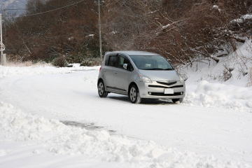 | 先行者の車はない。 コース入り口付近の積雪は15cm程度だったが、もちろんスノーシューを担いで歩くことに・・・ |