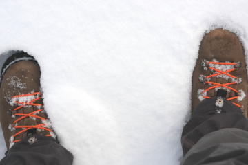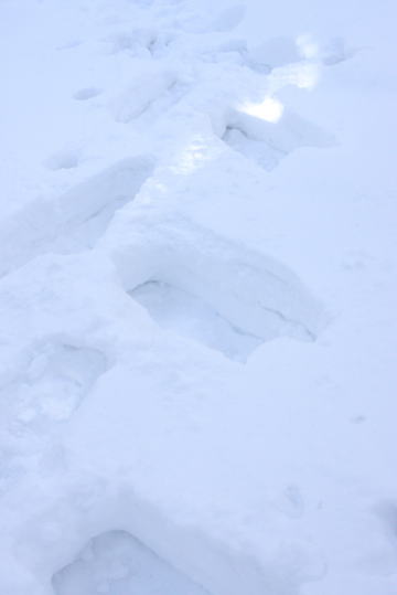スノーシューを履いていても膝上まで沈み込んでしまうこともあったが、 真っ白な雪のキャンバスに自分だけの足跡を残していくのは何て気持ちがいいんだろう。 |