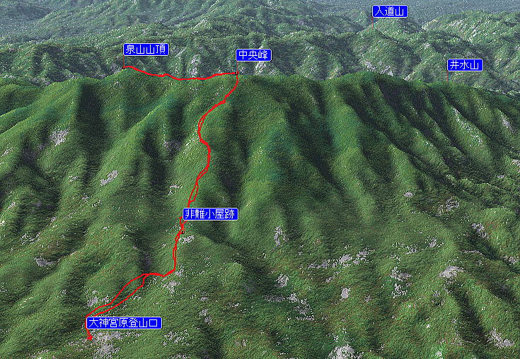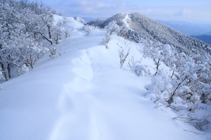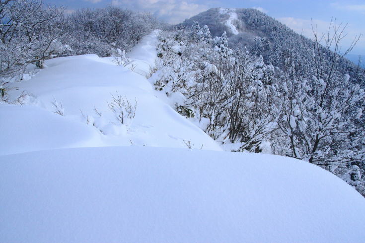 こちらは泉山に続く縦走路 気持ちのいい稜線歩きが楽しめそうだ。 |