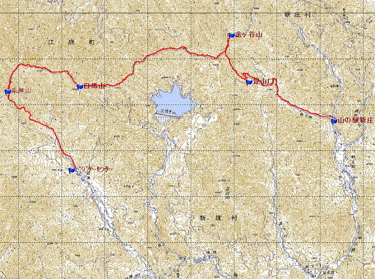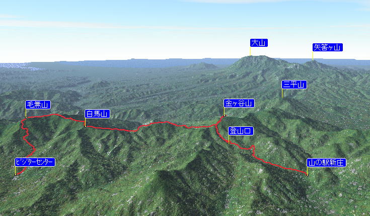 久しぶりに山を歩ける機会を得て新庄村に車を走らせた。 毛無山登山口の駐車場では一番乗りの女性が身支度をされているところだった。 挨拶を交わすと、2年前の積雪期に那岐山の非難小屋でご一緒させていただいた方だった。 以来このHPをご覧いただき、昨年の秋には遭難して落ち込んでいる私に温かい激励のメッセージを届けて下さったこともある。 思わぬ再会に会話もはずみ、車が2台あることから金ヶ谷山〜毛無山を縦走することになった。 (参考) 山の駅〜ビジターセンター 約12km |