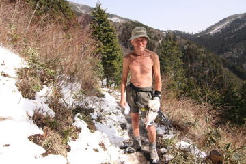 このあと積雪の山頂でお弁当を広げましたが、吹き抜ける風とやわらかい日差しに春を感じましたね。 下山後、山の駅にある山野草公園に立ち寄ってみました。 |