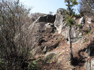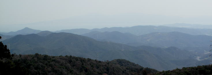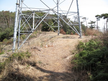 展望所到着(PM0:20) かすんではいるものの小豆島が辛うじて望めた。 ここでゆっくりしたあと三角点を目指した。(PM1:20) |