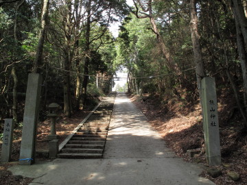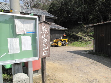 熊山神社の鳥居前を通り頂上駐車場を経由して 東に伸びる車道をさらに300mほど進むとNTTの無線中継所の案内板がある。 |