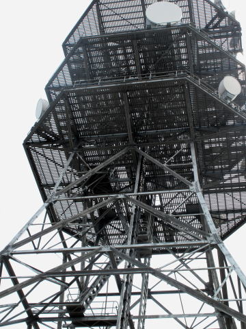 この案内板を左折して道なりに行くと巨大な鉄塔が建っていた。 これがNTT無線中継所だ。 間近に見るとかなり迫力がある。 |