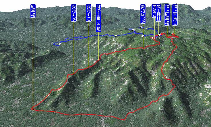 再び頂上駐車場に戻り油滝神社コースを下った。 |