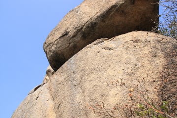 大きな休憩舎をスルーして登山道を進むと遠くから眺めていた大岩が目の前に現れる。 (AM10:42)