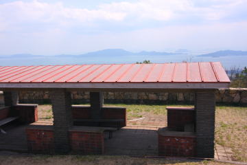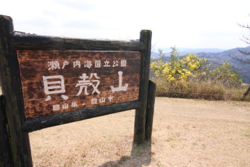 やっと貝殻山駐車場に辿り着いたのだ。 駐車場脇の階段を上り終えると大きな広場が広がっていて、とても山頂とは思えない風景だった。 三角点にタッチして瀬戸内海が見渡せる休憩舎まで歩いてみた。 山頂ではわずかに咲き始めた桜の下で花見をしているグループや家族連れの姿があるだけでハイカーの姿はなかった。 |