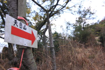 20m〜30m高度を上げるとこれから向かう天目山が目の前に… 小ピークを天目山方面に下ると再び車道に出るが、すぐに表示板が天目山に案内してくれた。 |