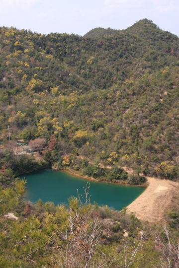 剣山山頂からは樹木に邪魔されて展望はないが少し登山道を戻れば児島湾と岡山市街が一望できる。 このあと天目山駐車場に戻り、デポした自転車でアップダウンを繰り返しながら山を下った。 今日はすばらしい展望にたびたび立ち止まり時間を食ってしまったが、帰りは国民宿舎前の駐車場までわずか20分の道のりだった。 |