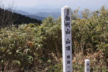 伯州山荘に辿り着くと小屋から出てきた一人の男性が、たった今まで山頂も小屋の中も大変な賑わいだったと教えてくれた。 いいタイミングで登ってきたようだ。 伯州山荘で遅い昼食にしようかとも思ったが、スルーして山頂を目指すことに… とは言っても山頂までは5分程度の距離である。 |