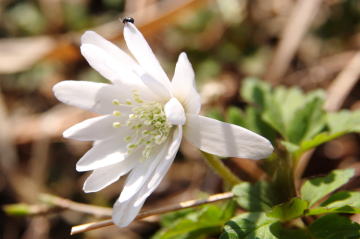 時間が遅いので、すでに畑仕事も終わってしまったのかな。 道端には今年もキクザキイチゲが純白で清楚な花を咲かせている。 舗装道路がやがて未舗装の作業道に変わりしばらく行くと鐘状の淡いピンクの花をつけたイワナシが咲いていた。 秋には実がなり食べられるそうだ。 |