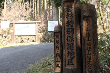 この展望所をわずかに下ると若杉峠である。 峠には1754年に建立された若杉地蔵尊がある。 かつて鳥取県と岡山県を結ぶ要路だった頃から、若杉地蔵は峠を越えるたくさんの旅人の安全を見守ってきたことだろう。 |