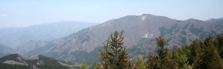途中若杉原生林の駐車場に帰着する周回コースとの分岐を見送り、一汗かいたところで若杉峠手前の休憩舎に辿り着いた。 北東の展望が開けクラマスや氷ノ山などが一望できる。 吹き抜ける風がとても気持ちいい。 |