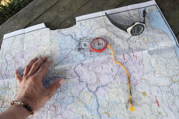 山頂の東屋のテーブルに地図を広げるが・・・ |