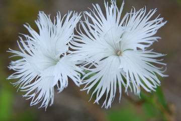 右カーブを過ぎると今度は北側に急斜面のゲレンデが広がっていた。 どうやらこれがチャンピオンコースのようだ。 これを直登できないかと見上げるが、傾斜がきついうえ雑草が生い茂っている。 とても歩く気にはなれず車道をさらに歩き続けた。 道路脇には季節を間違えたアジサイや珍しい白花のカワラナデシコが咲いている。 |