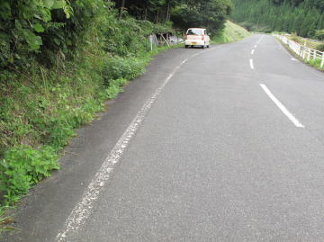 車は林道から50m先の大きく膨らんでいるところに駐車。 |