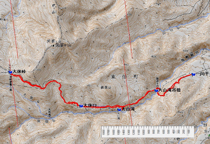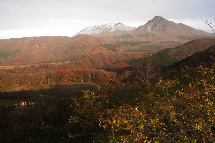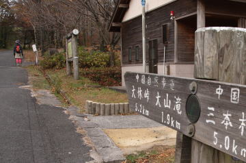 | 今回は大山周辺の山々の紅葉を楽しもうと、家内を誘って一向平(イッコンガナル)に向かった。 一向平から大休峠を経由して川床まで続く中国自然遊歩道は、かつて大山詣でに利用された古道である。 途中には長さ45m 高さ30mもある大山滝吊橋や日本の滝百選に選ばれた落差45mの大山滝など見所も多く、 紅葉シーズンにぜひ二人で歩いてみたいと思っていた。 |