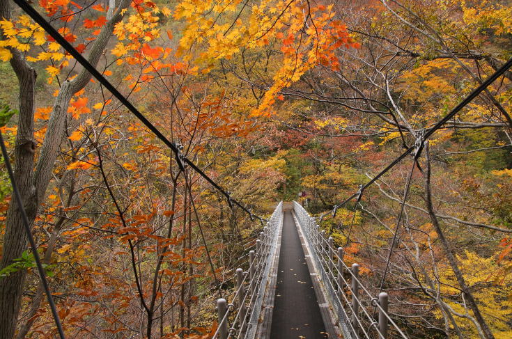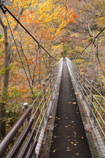 長さ45m 高さ30mの大山滝吊橋 揺れる橋の上から眺める景色はなかなかの迫力です。 上の画像にマウスポインタをどうぞ。 |
