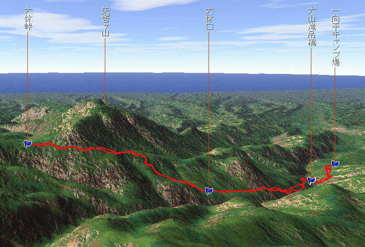 大休非難小屋から矢筈ヶ山山頂まで1時間程度の距離ではあったけれど、 二人で楽しく歩けるのはここまでだと判断して、ゆっくり山メシを楽しんだあと往路を引き返した。 |
