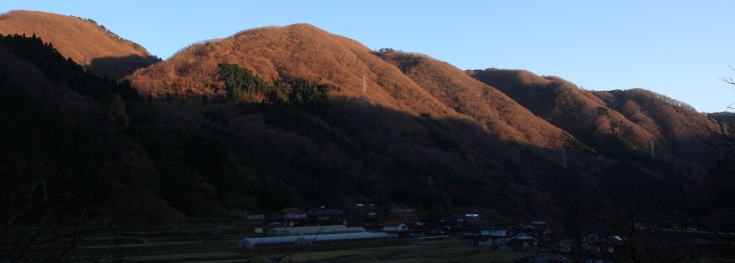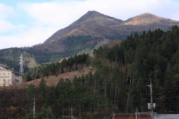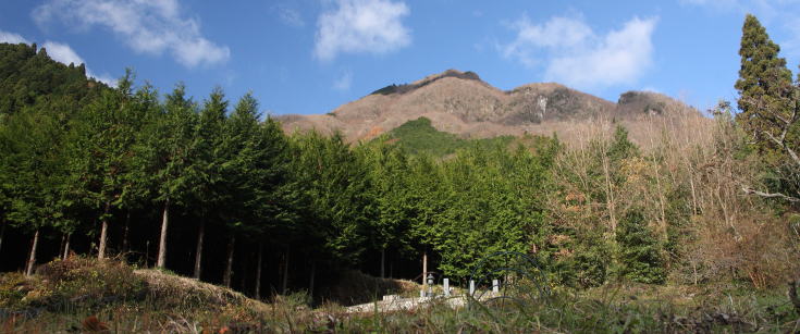 集落の外れにある墓地から見上げる櫃ヶ山 |