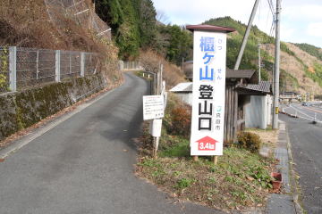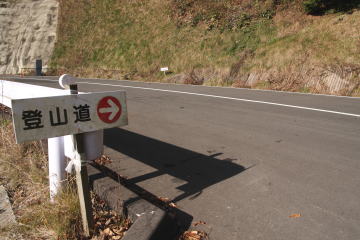 登山口の看板の右側に小屋がありその隣に駐車スペースがあるので車をここに置いて歩き始めた。 |
