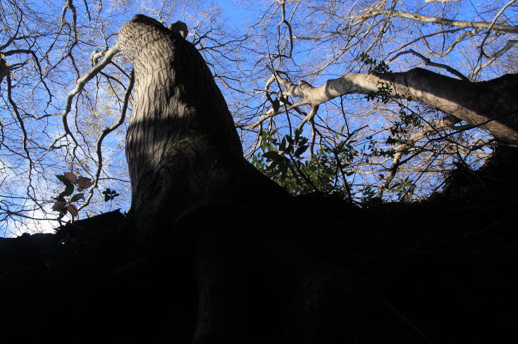 もうすっかり落葉した広葉樹 見通しの利かない樹林帯を抜け出し、5合目が近づくと展望が一気に広がる。