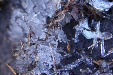 9合目からの山頂に続く階段には霜柱ができていて踏み潰す音が心地よかった。 |