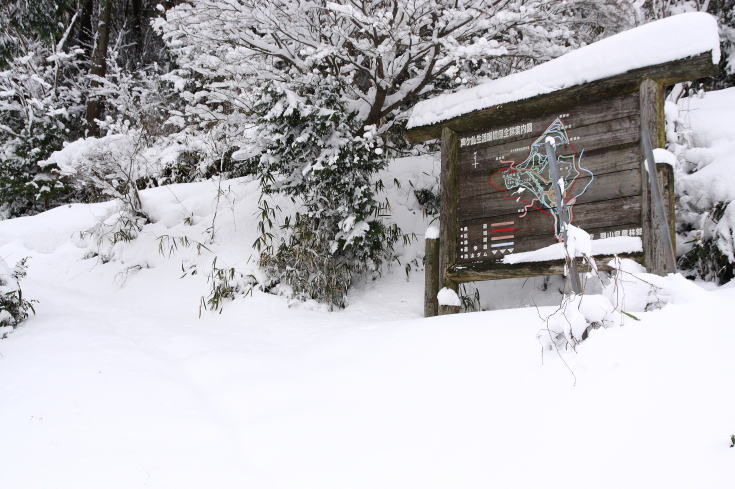 このため当然登山道は荒れていて一部ヤブ漕ぎとなっている。 これまで2〜3度歩いているが積雪期に歩いたことがなかったのでチャンスをうかがっていた。 昨日から降り続いた雪である程度の積雪が期待されたので出かけてみることに・・・ |