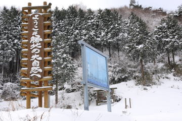 山形仙の登山道は声ヶ乢の駐車場の脇に立つ案内図のところから始まる。 登山口の積雪は30cm程度だろうか。 ここでスノーシューを装着して歩き始めた。 (AM11:36) 登山道に入ると積雪が増し50cmを超えた。 いきなり新雪のラッセルだ。 果たして山頂までたどり着けるのだろうか。 |
