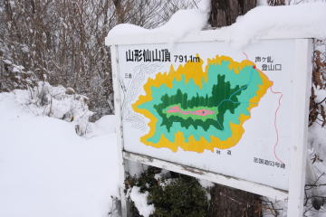7〜8年ぶりに訪れた山形仙で少々驚いてしまった。 反射板のかなり手前に山頂案内図が立っていたからだ。 「この場所が山頂です。」と立てられているようにしか見えない。 山頂はまだこの先にある反射板の建っている場所の筈なんだけどな… そんなことを考えながらさらに進む。 |