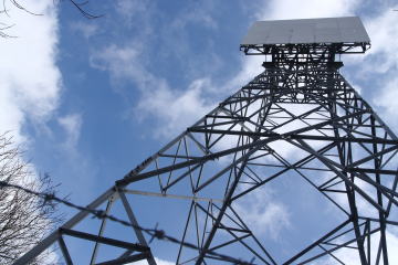 これぞ山頂?に建つ反射板 (PM1:07) 三角点は残念ながら雪に埋もれて確認できなかった。 |