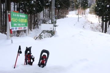 スノーシューで山頂から約1kmの道のりを一気に駆け下りてペルピール自然公園に到着した。 (PM12:15) |