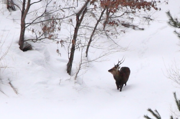 下山途中に遭遇した鹿 今年は動物たちにとっても厳しい冬に違いない。 上の画像にマウスポインタをどうぞ! |