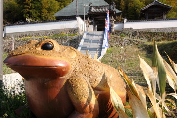 恵日山高顕寺の入口で出迎えてくれた大きなカエルの置物 |