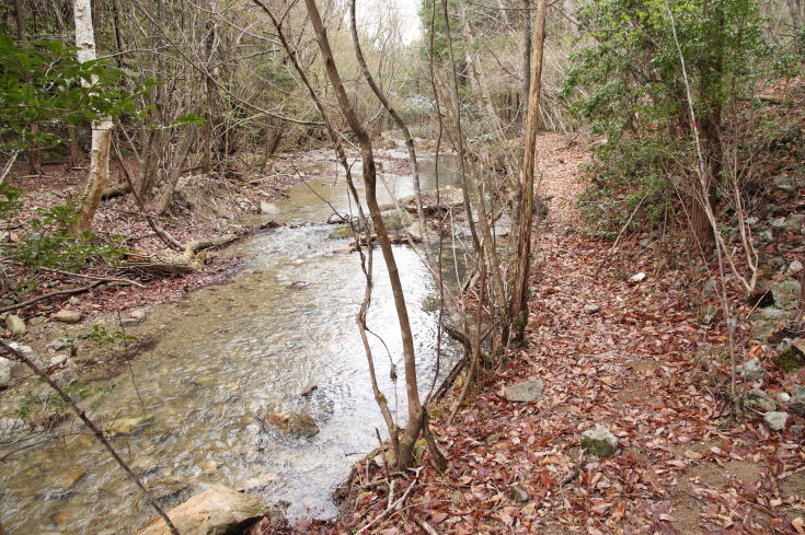 八塔寺ふるさと村にひとたび足を踏み入れると茅葺屋根の民家が点在し、 これぞ日本の原風景といった風情が漂っている。 そんなわけで今回は八塔寺ふるさと村を基点に八塔寺山(539m)を歩いてみたい。 とはいえ登山口から山頂までわずか20分〜30分の距離なのでガイドブックを参考にして 八塔寺山の北側に下って滝宮川の源流沿いを途中テープを追いながら天石門別神社(あまのいわとわけじんじゃ)まで歩き、 中国遊歩道を経由してふるさと村に戻る予定だ。 その距離約19km。 |