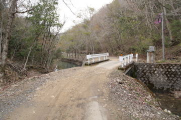 林道終点? というよりも林道が川で寸断されている。 |