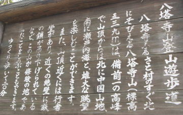 八塔寺の手前左側から始まる登山道。 |