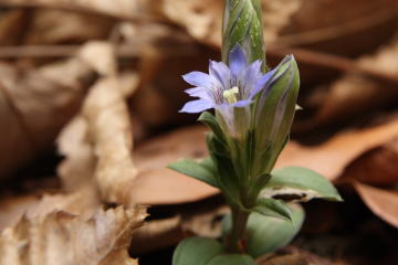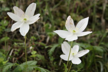 里山の斜面に花期を過ぎたイチリンソウがけな気にその最後の花を飾っている。