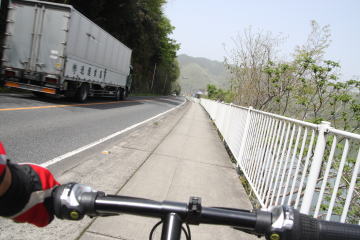 さて、椿谷のバス停まではほとんど下りなので快適に自転車を漕いで行けた。 国道374号線に出ると交通量が多いので安全のためにも歩道を走ったほうがよさそうだ。